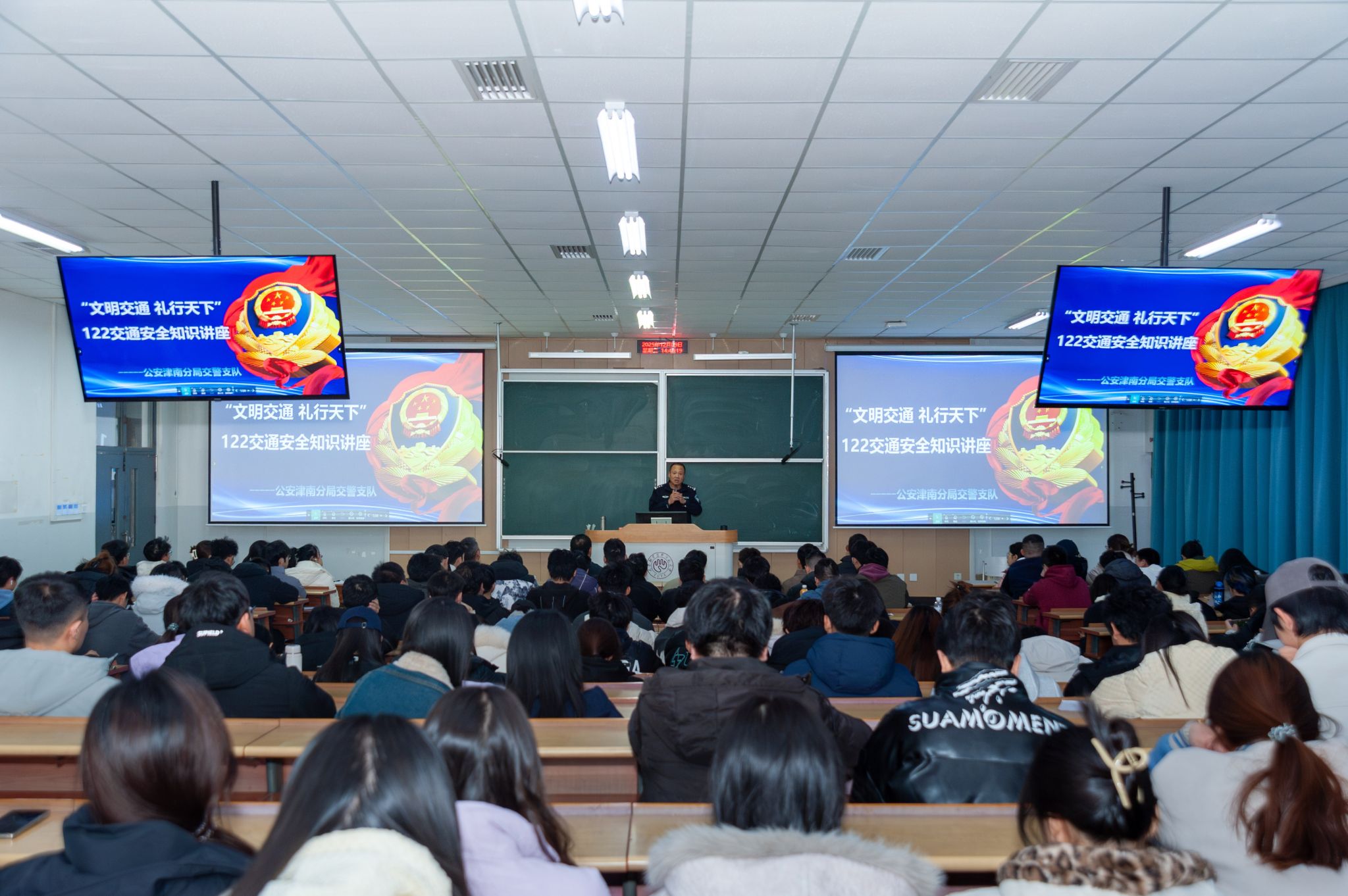 石警民行使接通变乱案例瞅频、图片战统计数据,联合校园周边接通处境取典范变乱案例,以案道法,用浅显易懂的谈话诠释了接通平安规矩。道座中,他核心分析了电动自止车背规骑止、灵活车酒驾风险、年夜货车盲区战启门宰等罕见接透风险;仔细解读马道谦让划定规矩、电动自止车骑止防备标准、灵活车驾驭平安重点等真用学问。末了,他号召年夜家要盲目恪守接通准则,吐弃接通成规,宽守接通划定规矩,干