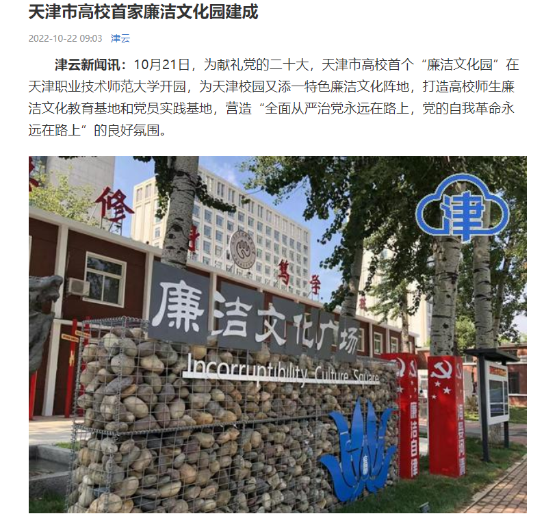 津云:天津市高校首家廉洁文化园建成