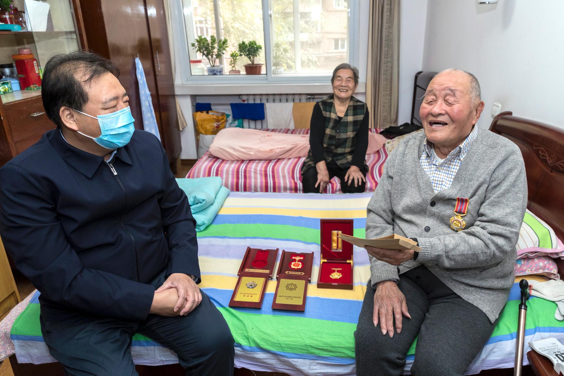 弛金刚刚、李康特地去到邵冠怯同道的家中,将“华夏群众意愿军抗好援晨放洋兴办70周年”留念章收到他脚中,为他佩带留念章,并背他致以密切慰劳战优美歌颂。邵冠怯白叟往年92岁,1945年10月从军退伍,曾参与过束缚和平战抗好援晨和平,于1967年退伍,1980年担当球友会杂务处副处少。